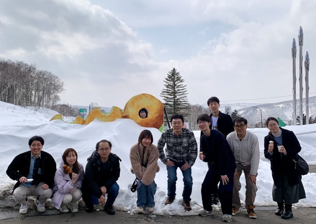 お知らせ ニセコにラボ旅行しました。 2026年3月22日 ニセコの温泉に1泊2日で行ってきました。恒例の温泉卓球大会や夜のクイズ大会で盛り上がり、食事と温泉を堪能しました。もうすぐ卒業する川口さんとの良い思い出ができました。企画をしてくれた幹事さんありがとう。 曇りで見えない羊蹄山を後ろに [受賞報告] 第8回日本オープンイノベーション大賞・経済産業大臣賞を受賞しました。 川口さん、シャドウィックさん(大学院生)が卒業しました。